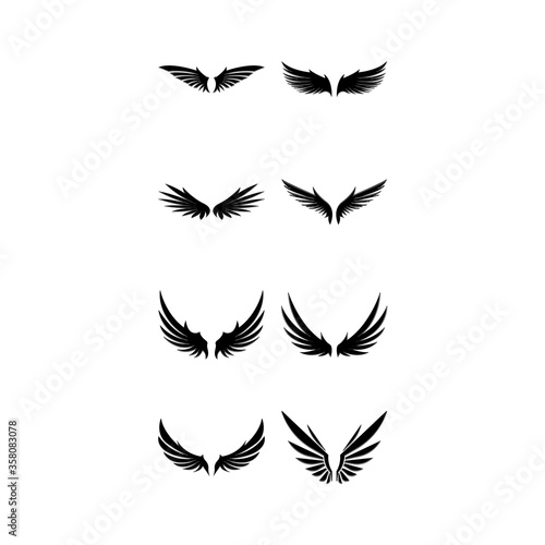 Wings black icons vector set. Modern minimalistic design.