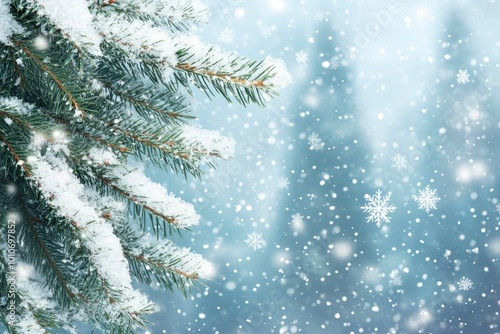 Winter background with fir branches and snowflakes with generative ai