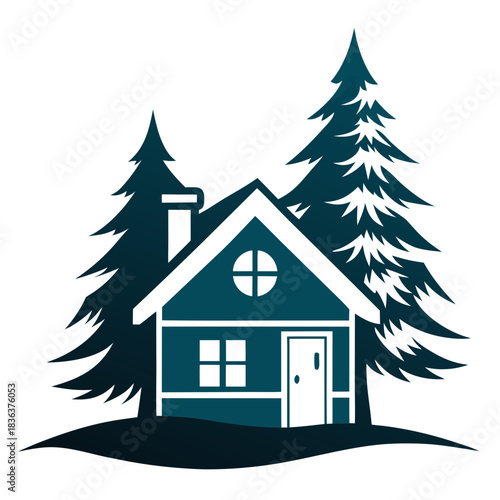 Winter House Silhouette Vector