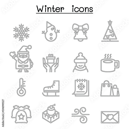 Winter icon set in thin line style
