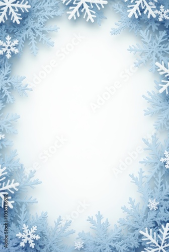 Winter snow frame. Christmas Snowflakes border. Snowy frame frozen background