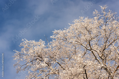 winter tree branches in the foreground