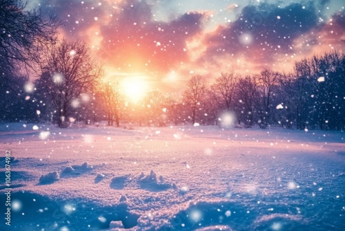 Winter Wonderland Sunset Snowfall Scenic Background