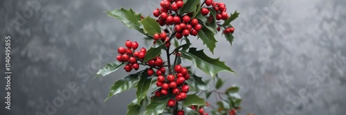 Winterberry holly with bright red berries against a grey sky, ildanthe, red berries