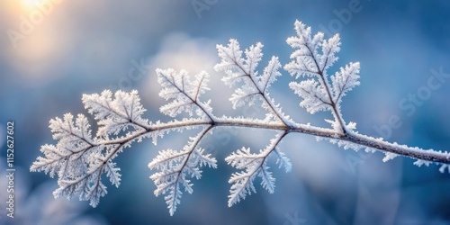 Winter's Delicate Embrace A Frost-Covered Branch Basking in the Gentle Morning Light