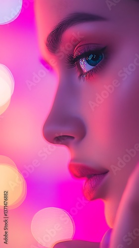 Woman adjusting earring, close-up shot with pastel background, refined and subtle elegance captured in delicate moment