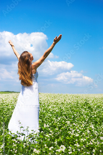 Woman and blue sky