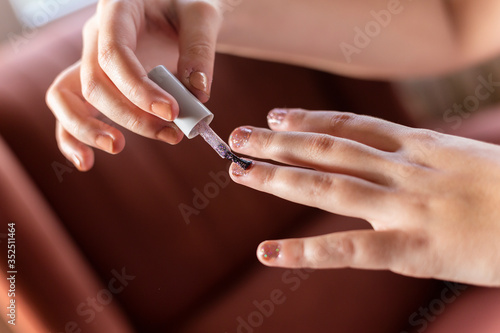 woman applying nail polish