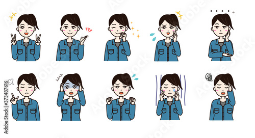 Woman business work clothes emotion set