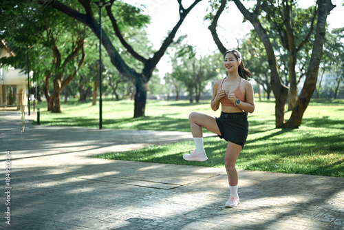 Woman doing A-Skips sprint drills workout session outdoors
