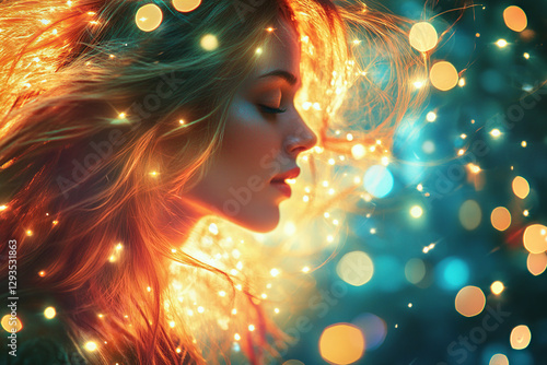 Woman in Dreamy Light with Bokeh Effect