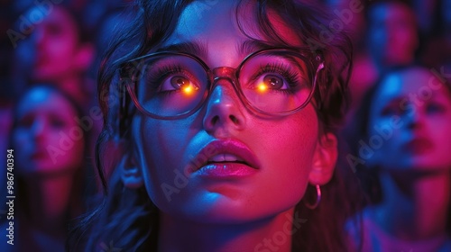Woman in Glasses with Glowing Eyes
