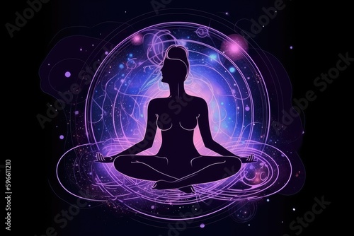 woman in meditation pose. Enlightenment psychic wave transcendence of consciousness generative ai