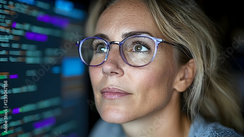 Woman programmer coding late at night