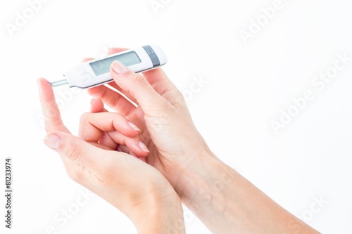 Woman testing her blood glucose level