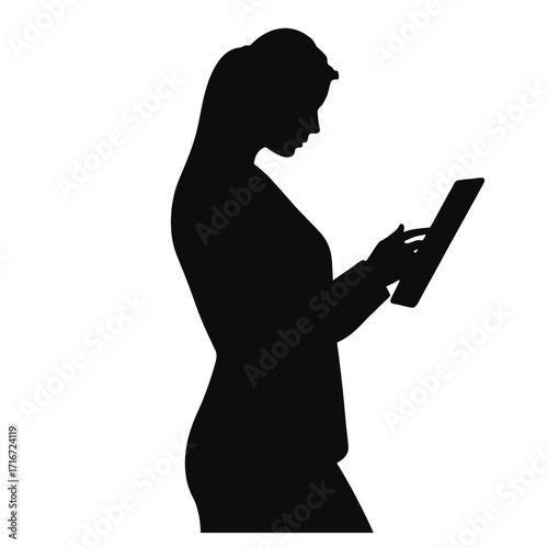Woman using tablet while standing in silhouette against white background