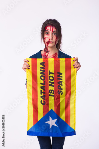 Woman was victim of riots of catalan protesting for spanish government decision about referendum of independence of catalunya