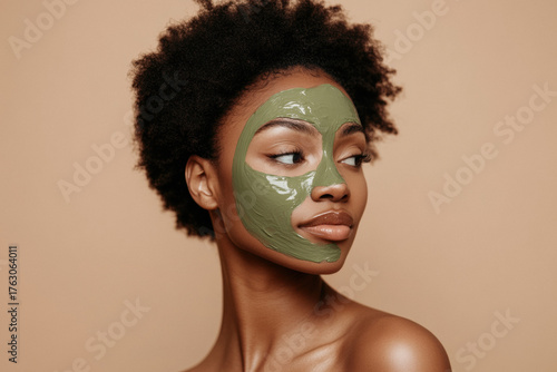 Woman with a Green Face Mask