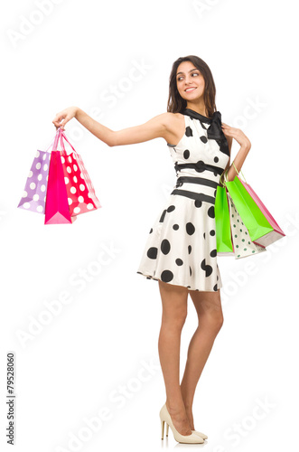 Woman with shopping bags isolated on white