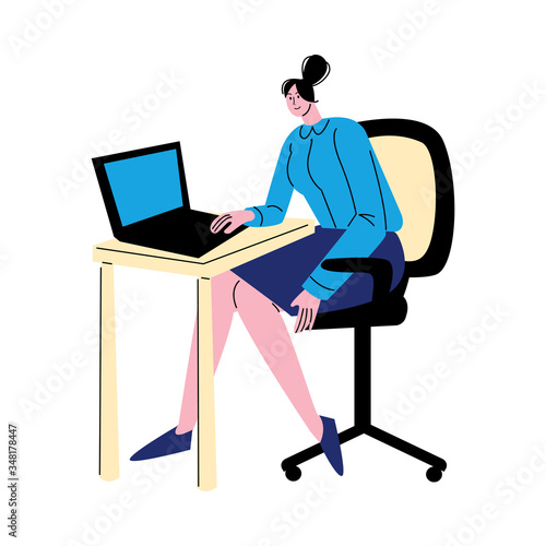 Woman worker sitting on chair and working in office vector illustration