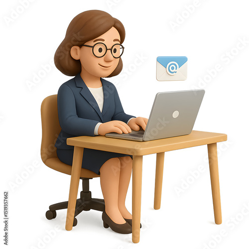 Woman Working on Computer Sending and Receiving Emails Online Transparent Background