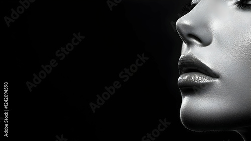 Woman's face, profile, dark background, beauty, cosmetics