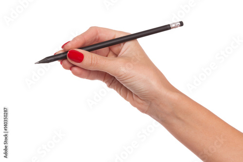 Woman's Hand With Red Nails Holding Pencil Isolated