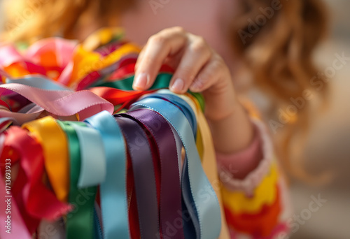 Woman's Hands Selecting Colorful Ribbons, Craft Supplies
