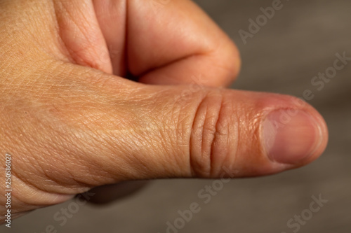 Woman's scar skin on thumb of hand, Close up & Macro shot, Asian Body skin part, Healthcare concept, Abstract background