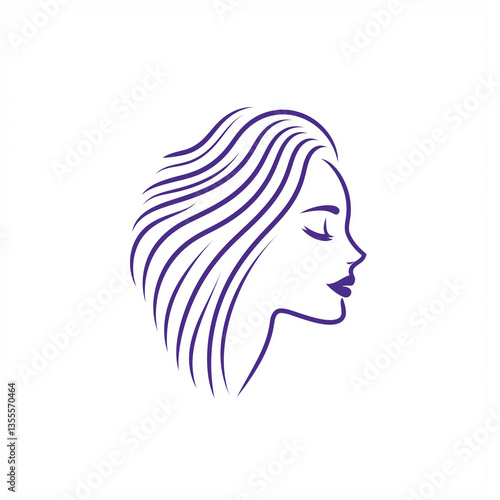 Woman's silhouette logo design with flowing hair in simple purple style on white background, ideal for beauty and wellness branding