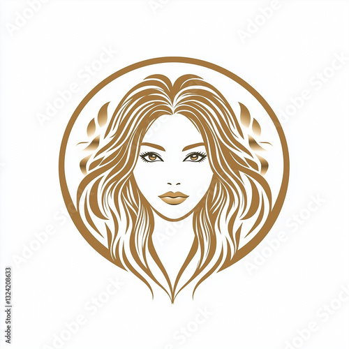 women long hair style icon, logo women face on white backgroun