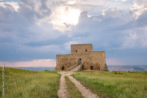 Wonderful view of Monteserico castle on a stormy day. Genzano di Lucania - Basilicata, Italy