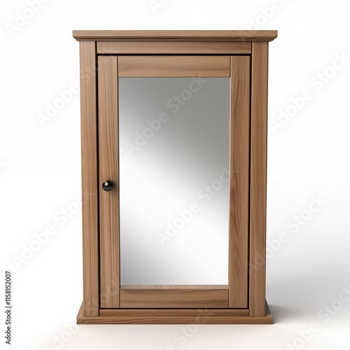 Wooden Bathroom Cabinet with Mirror Modern Design Brown Wood Black Knob