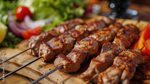 Wooden Cutting Board with Meat and Vegetables