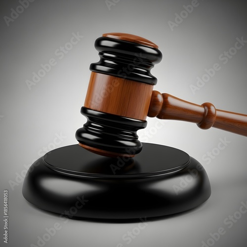 Wooden gavel resting on a black sound block, symbolizing legal proceedings and justice