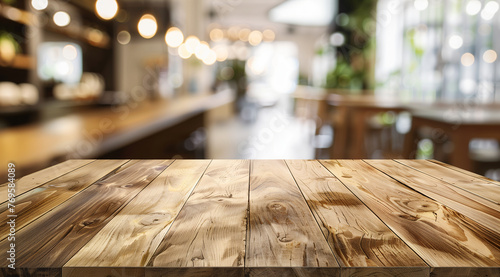 wooden table top with blurred abstract background for product display and presentation, modern design concept