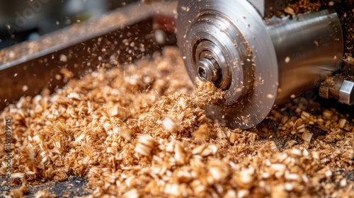 Woodworking Machine in Action: Close-up of Wood Shavings