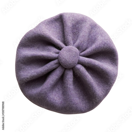 Woolen Beret in Soft Lilac with a Bow Isolated on Transparent Background