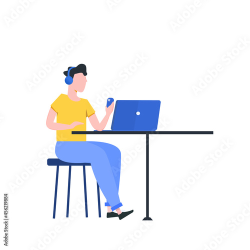 Work at home.freelance working online from home.illustrated.