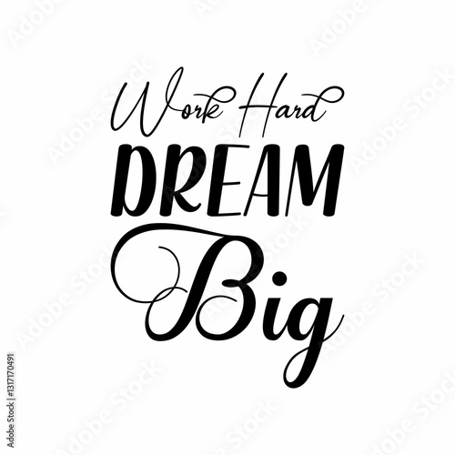 work hard dream big black letters quote