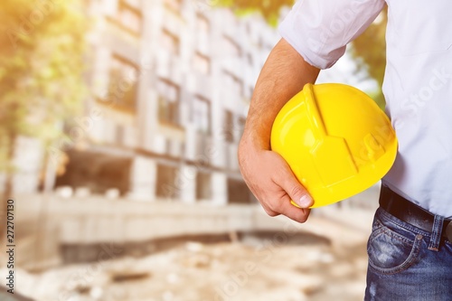 Worker man with helmet on background