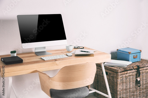 Working place on white wall background