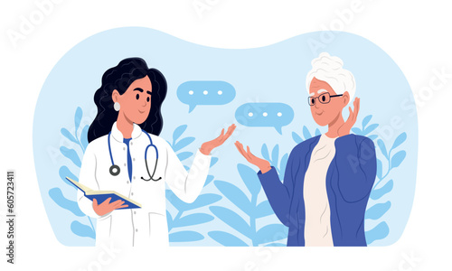 World Alzheimer's Day. A doctor informs an elderly woman about Alzheimer's disease. Alzheimer's and Brain Awareness Month. June. Vector banner.