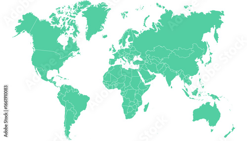 World map. Green modern vector map. Silhouette map