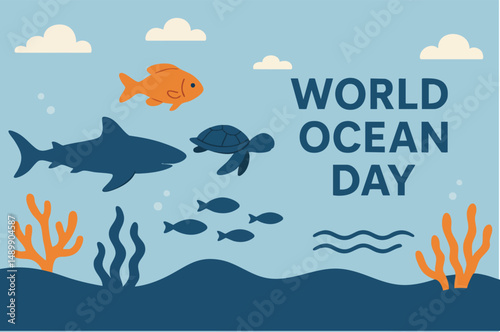 World Ocean Day Cover Poster vector Template