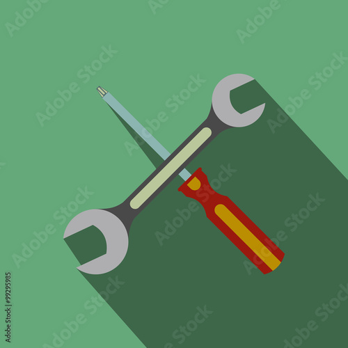 Wrench and screwdriver flat icon with shadow