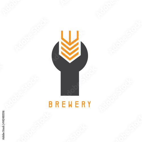 wrench with wheat spike vector design template
