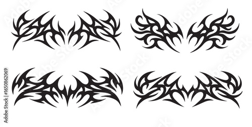 y2k neo tribal sigilism tatto pack. Flame shape in liquid mercury. abstract neo tribal cyber sigil gothic melted modern burn form, design element. 2d vector illustration