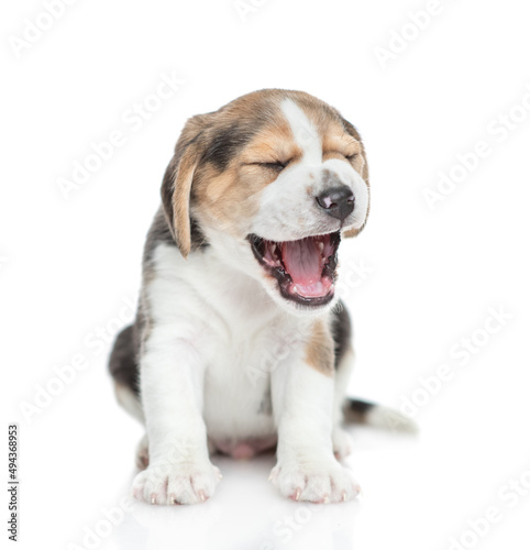 Yawning Beagle puppy. isolated on white background