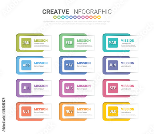 Year planner, 12 months, 1 year, Timeline infographics design vector and Presentation business can be used for workflow, process diagram, flow chart.